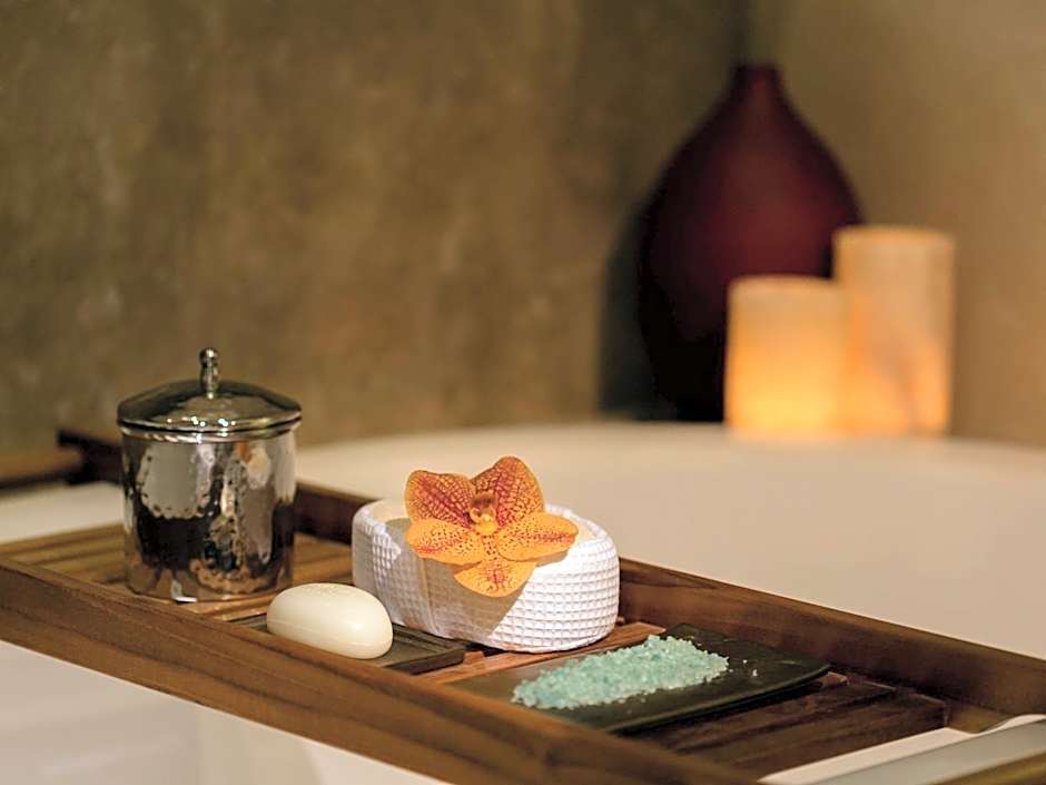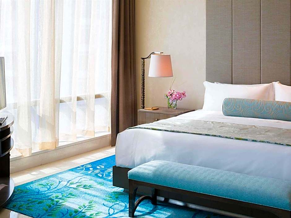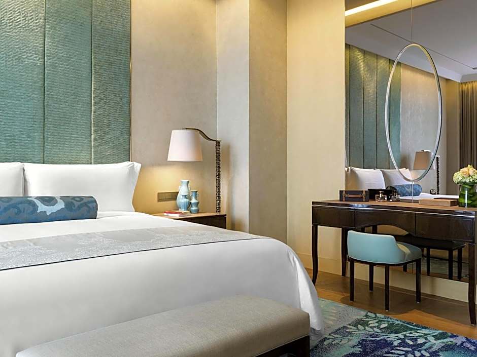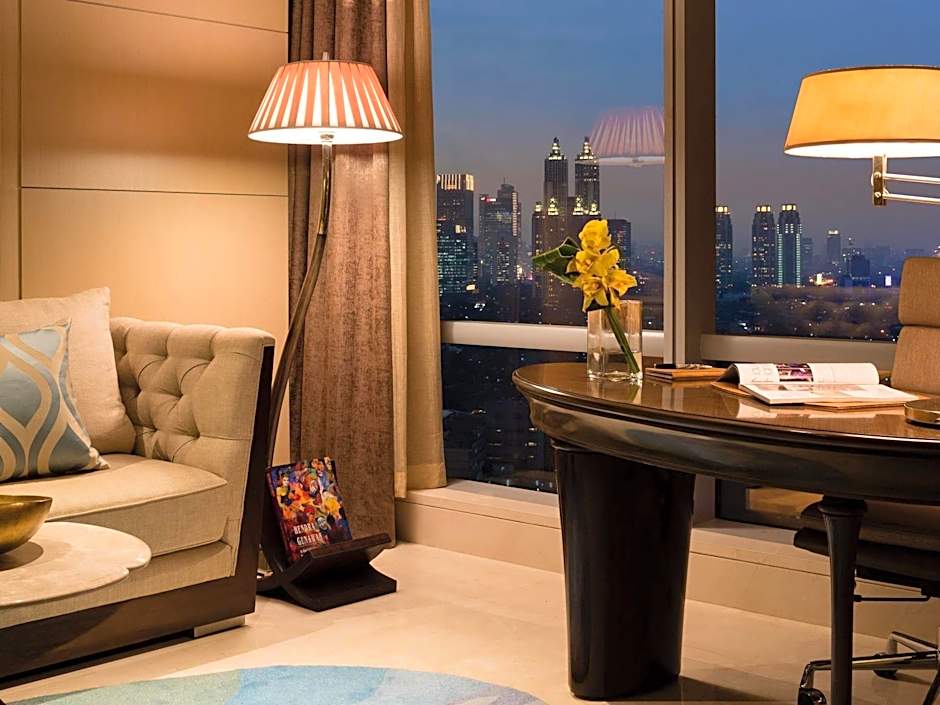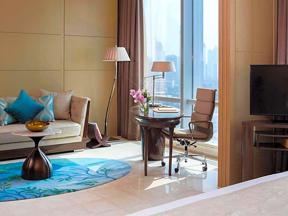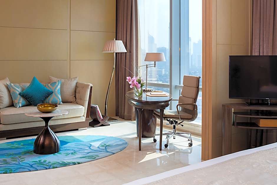 Offering views of the city, this corner suite has a separate living, dining and working areas. It also comes with a walk-in wardrobe, an private bathroom and an additional washroom for guests.